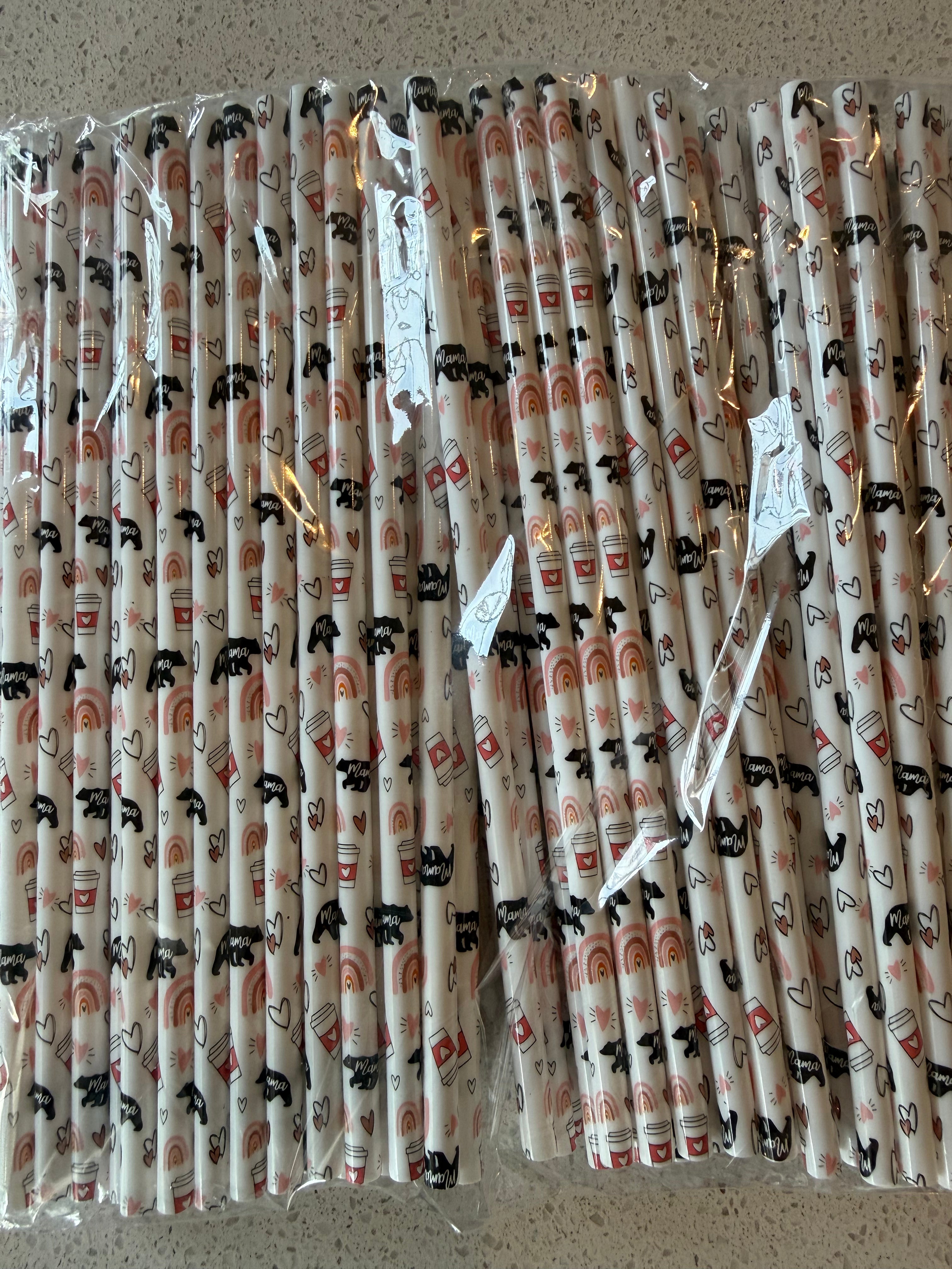 Exclusive Pencil/ Teacher print plastic straw